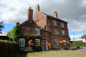 The Harrington Arms is a late seventeenth or early eighteenth century brick building, with nineteenth century additions, that is listed as “a rare example of an unspoilt C19 rural public house.” It lies to the south of the village, but is close to an interesting complex of historic buildings including Gawsworth Old Hall, the Old Rectory and the parish church of St James – which all lie a short distance to the north-east.